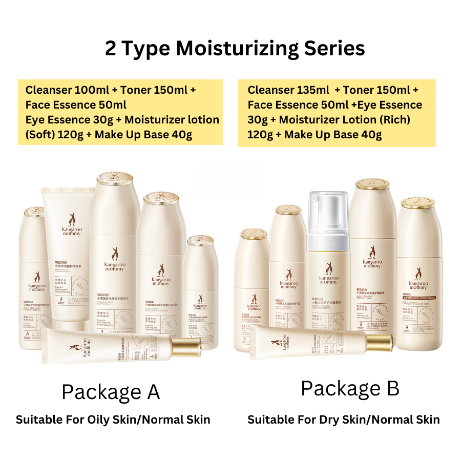 4 Pcs Set-Package A, 4 Pcs Set-Package B, 5 Pcs Set-Package A, 5 Pcs Set-Package B, 6 Pcs Set-Package A, 6 Pcs Set-Package B, 6 Pcs Set-Package C, 7 Pcs Set-Package A, 7 Pcs Set-Package B, 7 Pcs Set-Package C, Cleanser Dry Skin, Cleanser Oily Skin, Toner, Lotion Dry Skin, Lotion Oily Skin, Essence, Eye Essence, Cream, Make up Base, Sunscreen